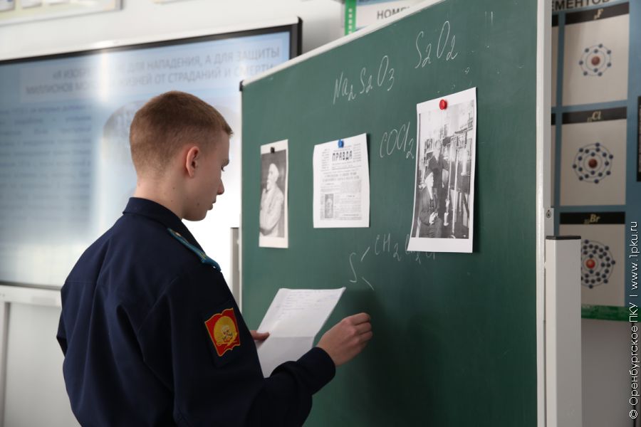 Кадеты 9-х классов Оренбургского президентского приняли участие в мероприятии, посвященном 165-летию со дня рождения Николая Зелинского — выдающегося русского химика, чьи изобретения спасли миллионы жизней.